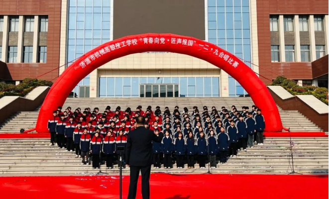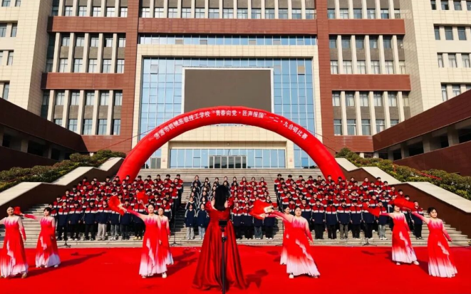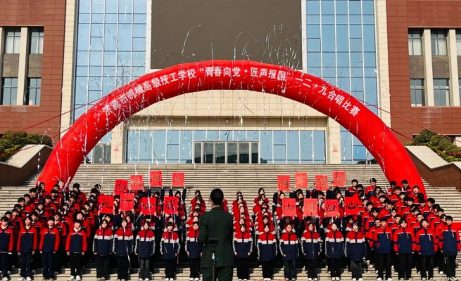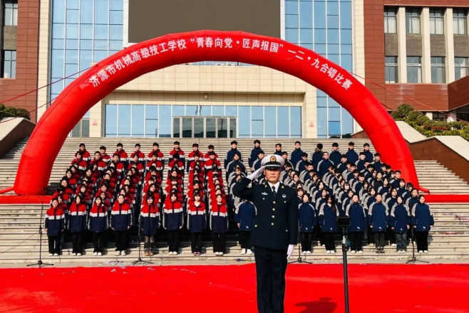 方阵亮点:整齐划一的《一二三四歌》,唱出了纪律与集体的力量。而一曲校本歌曲《爱技习武歌》,则是对技工学子身份最响亮的告白。歌声中将“精益求精”的工匠追求娓娓道来,极具校本特色与感召力。